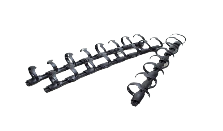 Du bare fører kablene inn og ut av holderen i et «zick-zack» -mønster mellom krokene.